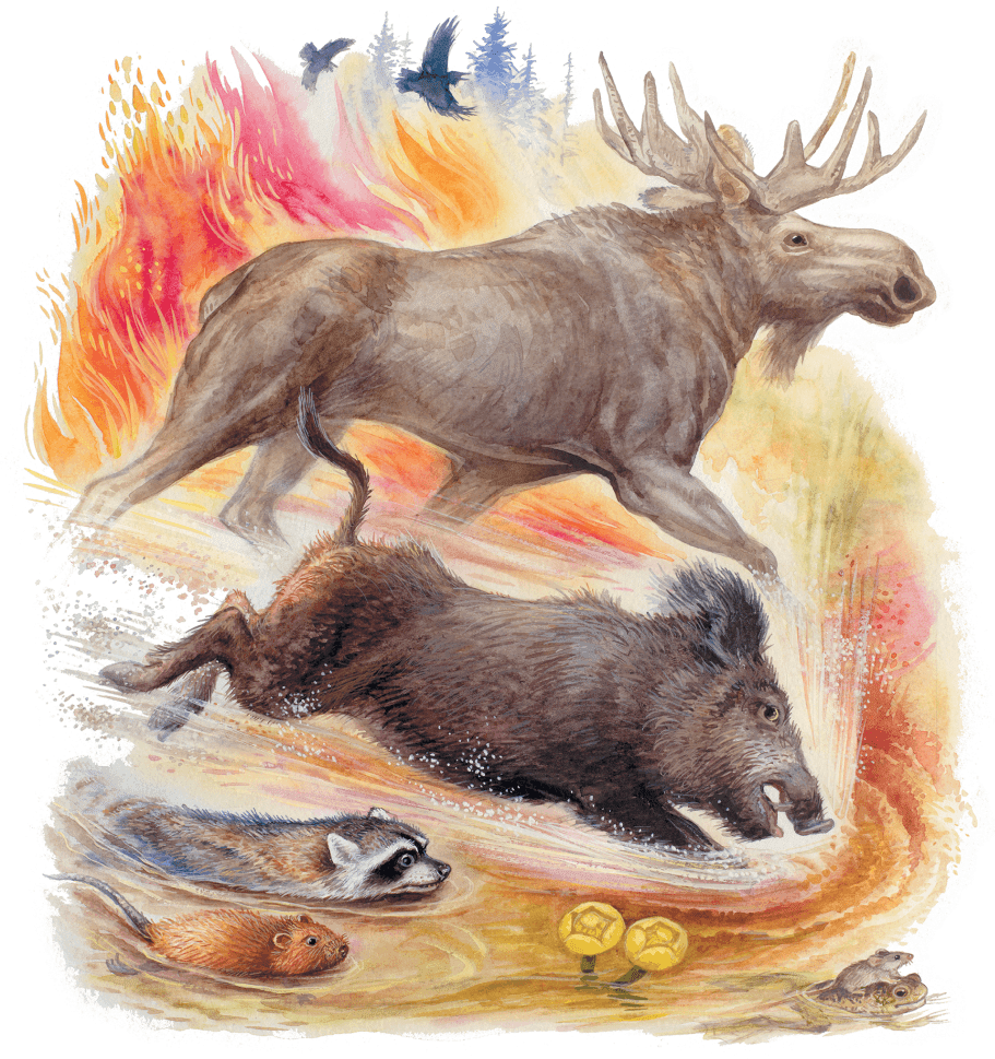 А в это время затрещали сучья, захрустел валежник. Вышла на поляну Медведица с медвежатами. Увидел её Кабанчик – и стреканул в густую траву.
