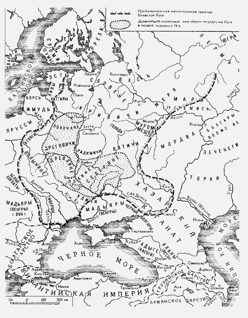 В заключение стоит заметить, что земли Киевской Руси имели довольно слабые политические и экономические связи как со столицей, так и между собой. Впрочем, это характерно и для других государств Европы конца IX в., таких, как, например, Западно-Франкское и Восточно-Франкское королевства, Великоморавское государство, Болгарское царство и др. Но до 1991 г. ни у одного серьезного историка не возникало сомнений, что у всех славянских племен, входивших в Древнерусское государство, был один язык, одни верования, и они были одним народом. Что же касается варяжского элемента в Киевском государстве, то большинство варягов ассимилировалось, а остальные, прослужив несколько лет у киевского князя, отправлялись служить в Византию, а в отдельных случаях возвращались на историческую родину.