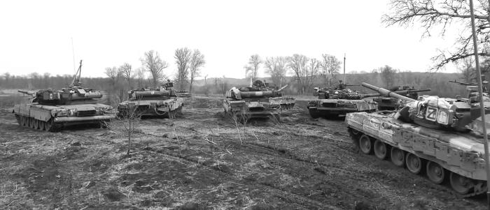 Российские танки на Донбассе после пересечения Северского Донца по понтонным мостам, апрель 2022 г. («Википедия»)