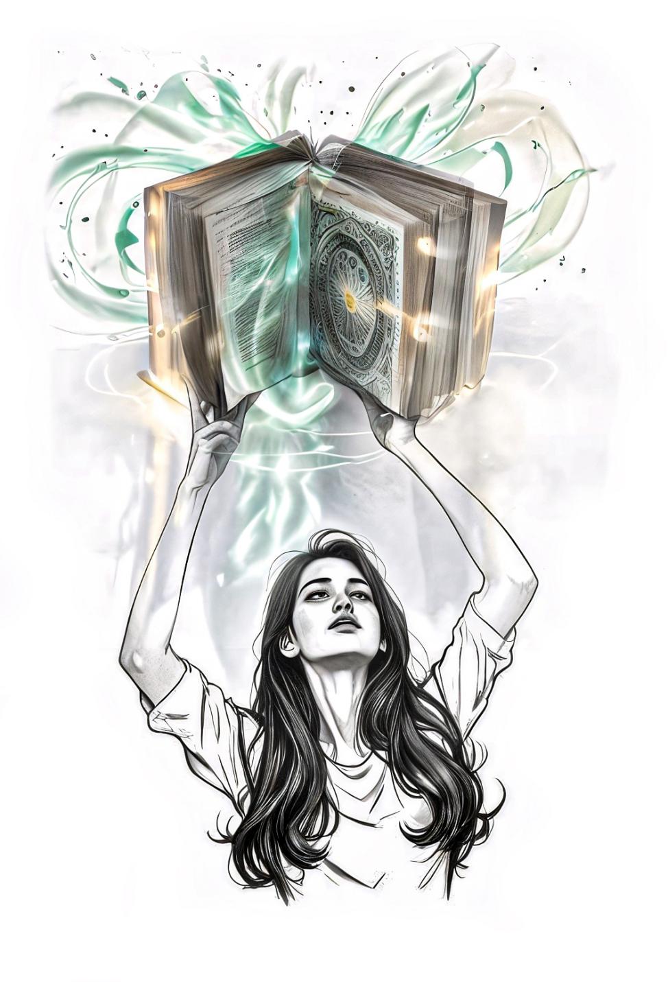 На листе была изображена девушка. Она стояла одна в заснеженном лесу. Её глаза были закрыты, но улыбка озаряла пейзаж. Она была счастлива, свободна. Именно поэтому я выбрала её. Мне захотелось узнать, почему она там, что чувствует и чем живёт. Я подняла книгу над головой и стала медленно опускать её на свою голову.