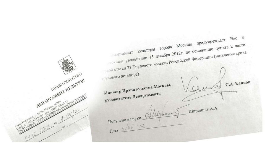Департамент культуры города Москвы предупреждает Вас о предстоящем увольнении 15 декабря 2012 г. по основанию пункта 2 части первой статьи 77 Трудового кодекса Российской Федерации (истечение срока трудового договора).
