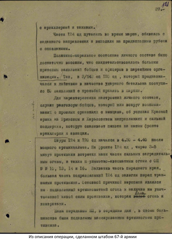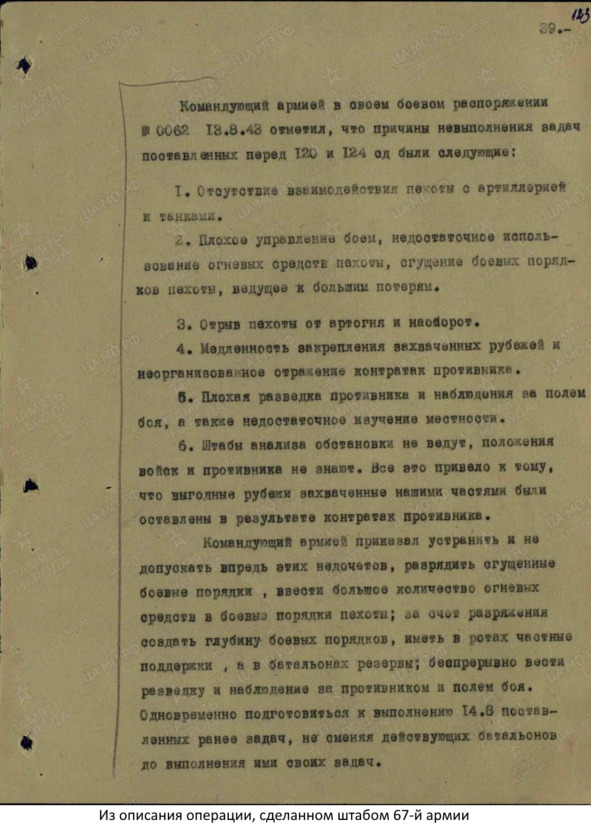 Там же сказано, что задача была выполнена блестяще, удалось «перемолоть» 10 дивизий фашистов и не дать их перебросить на Курскую Дугу.