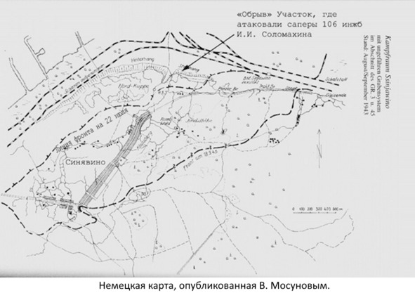 Самое печальное то, что массовый героизм сапёров Соломахина и Мосина, множества других пехотинцев, танкистов, лётчиков ничего не менял. Даже если бы сапёры и взяли эти укреплённые пункты, то на общую остановку это существенно не повлияло. Как показывал весь ход боёв, немцы достаточно легко восстанавливали положение, успешно контратакуя. Ошибки были где-то на более высоком уровне, и любой одиночный успех на отдельных участках фронта ничего не менял. Лобовые же атаки Синявинских высот давали лишь потери. Хочу напомнить, что это операция называлась ПЯТОЙ Синявинской, и была не последней. Занятые вермахтом в 1941 году Синявинские высоты так и остались неприступными до января 1944 года, пока немцам не пришлось самим уходить из этого района под угрозой окружения.