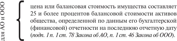 – связанная с приобретением, отчуждением или возможностью отчуждения обществом прямо либо косвенно имущества, цена или балансовая стоимость которого составляет 25 и более процентов балансовой стоимости активов общества, определенной по данным его бухгалтерской (финансовой) отчетности на последнюю отчетную дату;