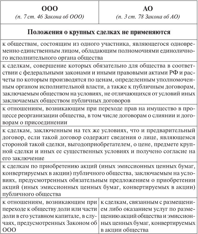 Обстоятельства, исключающие применение режима, установленного для крупных сделок