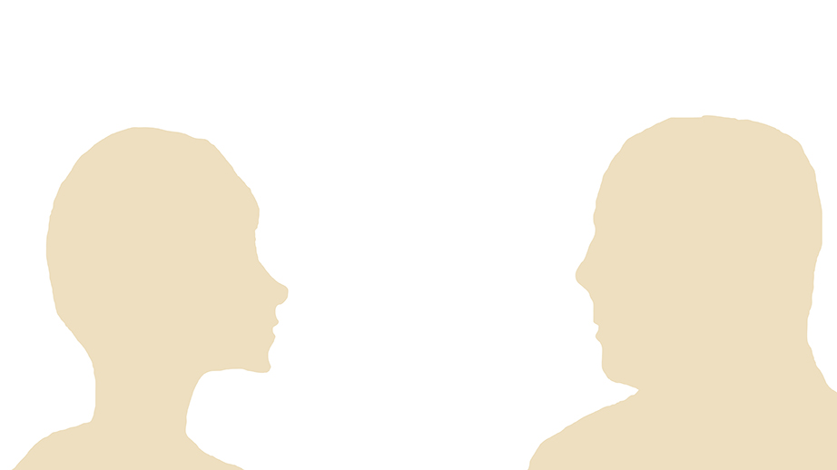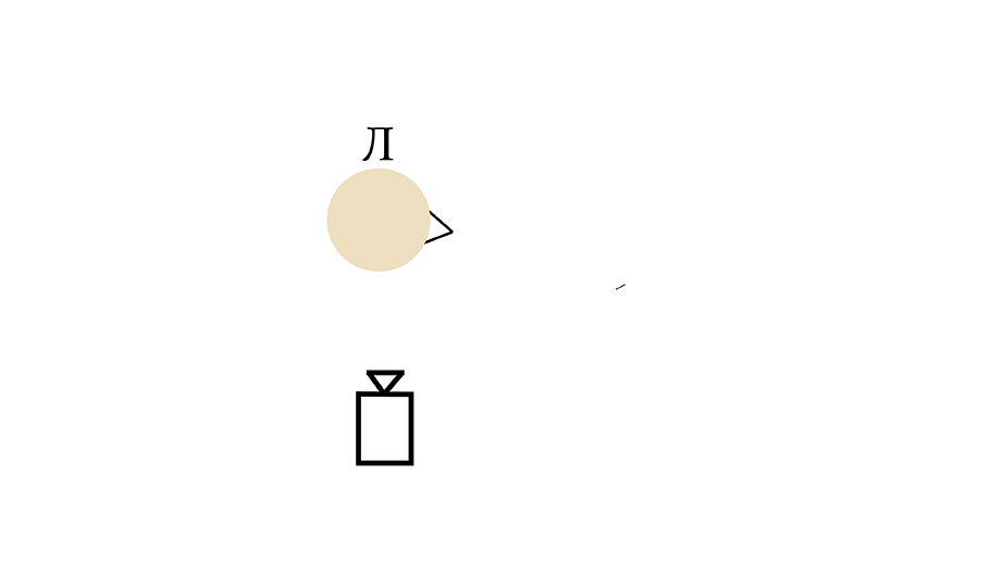 Мы с вами учимся снимать в одиночку, но тем не менее линию взаимодействия со зрителем нам хорошо бы выстроить. Так что это за линия такая? Представим двух людей, которые стоят друг напротив друга и ведут беседу, а мы снимаем их разговор на видео. Причем, снимаем их в профиль. При этом один человек находится в правой части кадра (назовем его господином «П»), другой, соответственно в левой (пусть будет госпожа «Л»).