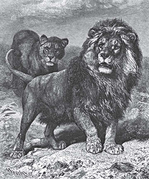 Достаточно бросить один взгляд на льва, чтобы понять, почему этому зверю еще древние дали название «царь зверей». Храбрость и сила, мужество и крепость, величавая серьезность и гордое спокойствие – таковы качества, отражающиеся во всей фигуре льва. Его взгляд светится достоинством истинно царским, его осанка невольно внушает уважение, во всех движениях чувствуется самоуверенность и убеждение в победе. Великолепный зверь как будто сам сознает свою мощь и с неподражаемым совершенством играет роль властелина животного царства.
