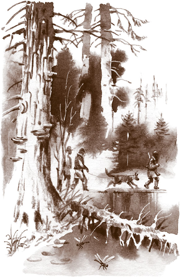 Дремучая, таинственная тайга возбуждала у людей страх перед чем-то неизвестным, что скрывается в ее глубине. Тайга казалась молчаливой и мрачной, но внимательный взгляд охотников ежеминутно раскрывал всё новые ее тайны. У тропинки под поваленным стволом дерева они открыли медвежью берлогу. Чуть дальше, на небольшом холмике, устроился жадный бурундук, один из самых маленьких в мире грызунов. На высохших ветвях сваленного дуба он сушил свои лакомства: грибы, коренья и орехи, запасы которых делал по крайней мере на два года вперед. Дальше, за холмом, вилась тропинка, протоптанная оленями; в дупле раскидистой липы пчелиный рой, – вероятно, там можно было найти ароматный лесной мед.