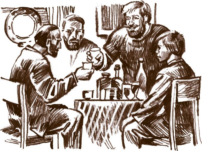 Не в своей тарелке был и боцман. Он целый день старался достичь вершин кулинарного искусства, но все его труды не приносили желаемого результата. Званый обед больше напоминал поминки, чем веселый пир. Кроме того, по странному стечению обстоятельств Некрасов посадил Павлова рядом с боцманом. Правда, по другую сторону моряка сидел Томек, но все равно свободно беседовать они не могли, а только изредка обменивались многозначительными взглядами и, подобно другим гостям, время от времени бросали какое-нибудь ничего не значащее слово.