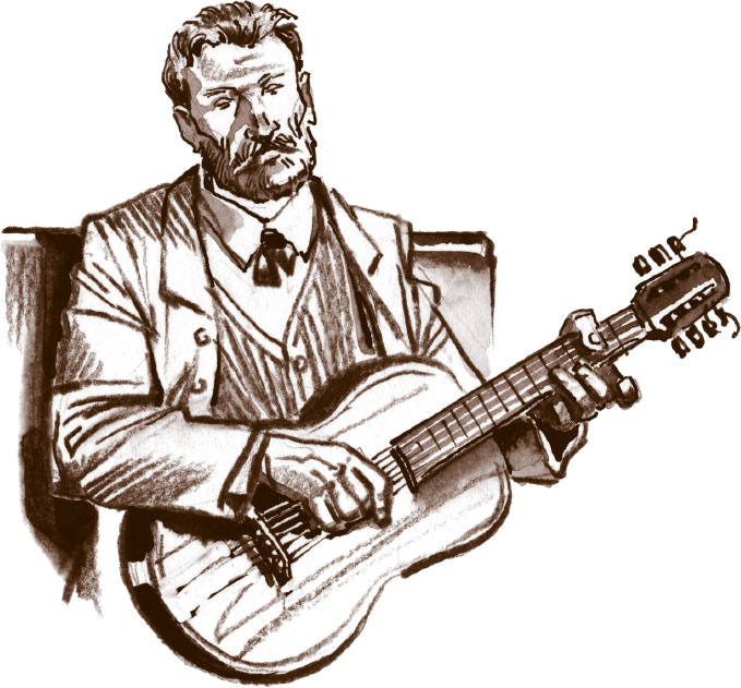 Некрасов снял со стены висевшую гитару, сел в кресло, ударил по струнам…