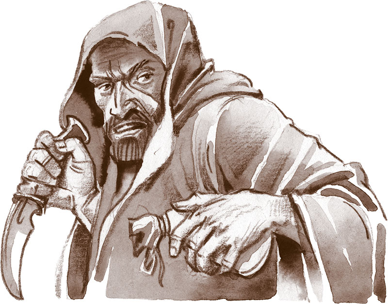 – Прежде всего должен объяснить вам, милостивые господа, почему, говоря о делах сагиба Смуги, я соблюдаю осторожность, – начал беседу Аббас. – Дело в том, что мой знакомый, досточтимый пандит[24] Давасарман[25], просил меня от имени сагиба Смуги сохранить для его друзей письмо и ценный депозит. Обстоятельства сложились так, что еще до вашего приезда сагиб Смуга вынужден был уехать на север. Меня предупредили о необыкновенной ценности депозита, поэтому я и храню его в сейфе на своей квартире. Вскоре я стал замечать, что за мной следит какой-то человек, тщательно скрывающий свое лицо. Это встревожило меня, и я принял кое-какие меры, причем однажды чуть не поймал моего преследователя. К сожалению, несмотря на, казалось бы, слабое телосложение, он был значительно сильнее меня. Свалил меня одним ударом кулака. И все же во время борьбы мне удалось сорвать с головы противника капюшон бурнуса[26]. Я увидел лицо с глубоким и широким шрамом. Как я уже сказал, этому человеку удалось сбежать. Вечером того же дня он вломился в мою комнату, но, к счастью, его спугнул слуга. Правда, с тех пор я моего преследователя больше не видел, но меня не покидает ощущение, что он находится где-то поблизости.