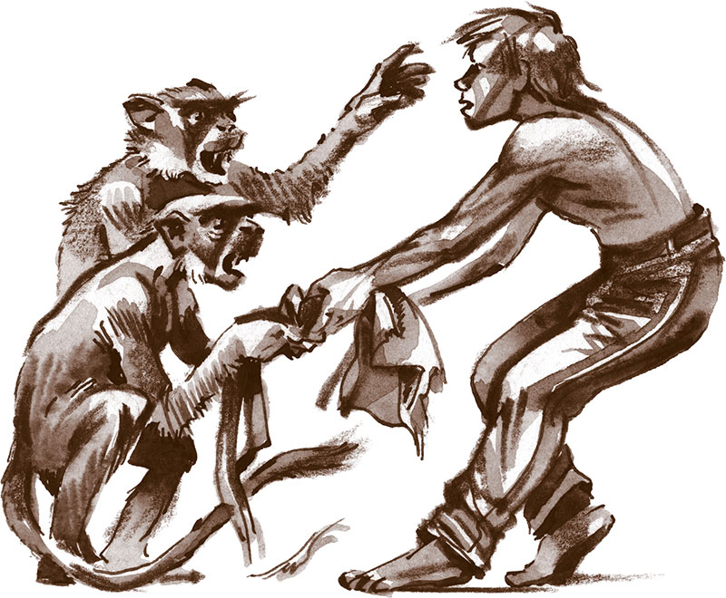 – И правда не много, – согласился моряк. – Но радуйся, браток, ведь одну из воровок-обезьян я так угостил ногой пониже спины, что она век будет обо мне помнить…