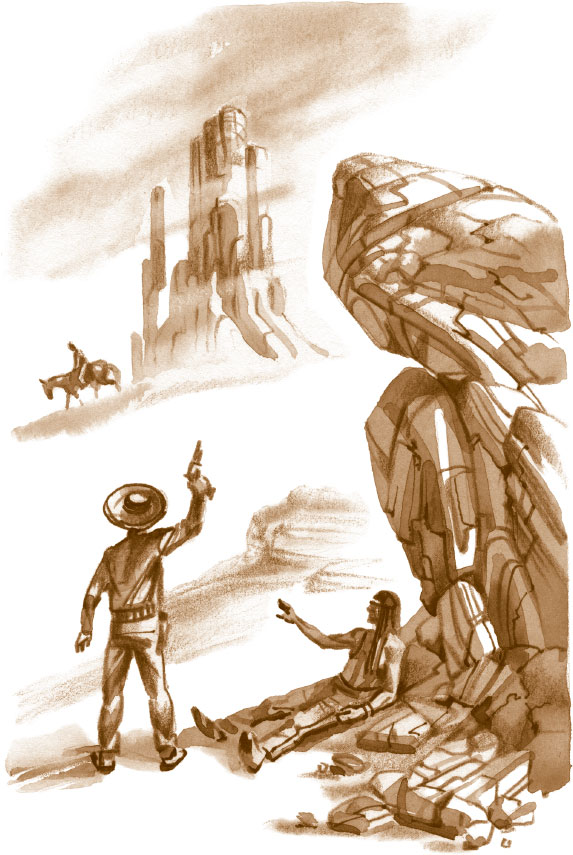 Он нашел свою лошадь, запрыгнул в седло, и они быстро спустились с горы на широкую равнину. Молча ехали галопом. Только спустя полчаса навахо осадил коня.