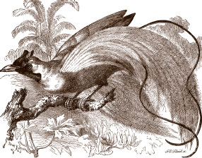 Только недавно мы получили обстоятельные сведения о чрезвычайно красивых птицах Новой Гвинеи, которые уже несколько столетий привозились к нам в изуродованном виде и давали повод к своеобразным сказаниям; их давно назвали и теперь еще зовут райскими птицами, потому что, по существовавшему поверью, они происходят непосредственно из рая. 〈…〉 Это живые, веселые, умные, но кокетливые птицы, вполне сознающие свою красоту и опасность, которой они благодаря ей подвергаются. Они принадлежат к числу бродячих птиц: то прилетают к берегам, то улетают вглубь страны, в зависимости от поспевания древесных плодов. В беспрерывном движении райские птицы перелетают с дерева на дерево, никогда не остаются долго на одной ветке и при малейшем шуме прячутся в густую листву верхушек деревьев; уже перед восходом солнца они бодро и хлопотливо ищут свой корм, состоящий из плодов и насекомых. (А. Брэм. Жизнь животных, т. 2.)