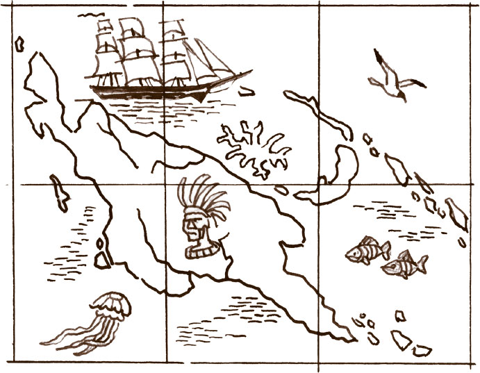 Искрящимся взором смотрел Томек на огромный остров, нарисованный на карте, площадь которого почти равнялась всей Скандинавии. Остров этот некогда составлял вместе с Зондскими островами сушу, соединявшую Южную Азию с Австралией. Какие же необыкновенные приключения ожидают их на этом таинственном острове? Даже форма острова, странно удлиненная, напоминала Томеку какое-то допотопное чудовище или райскую птицу, в погоню за которой они отправляются вместе с Салли.