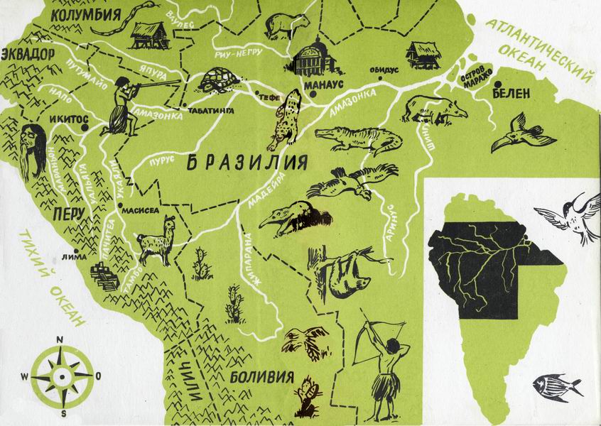 Томек достал карту Южной Америки и свой эскиз маршрута. Друзья уселись на землю и Смуга с интересом стал рассматривать сделанный Томеком чертеж.