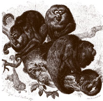 На первом месте среди всех цепкохвостых следует поставить ревунов (Mycetes). Это обыкновенно плотные, с высокой пирамидальной головой и выдающейся мордой небольшие обезьяны, покрытые густой шерстью, которая, удлиняясь на подбородке, принимает форму бороды. <…> Любимым их местопребыванием являются пустые, высокие и сырые леса Южной Америки. <…> Жизнь ревунов довольно однообразна. Днем они рассаживаются по высоким деревьям, на ночь же спускаются на более низкие деревья и, спрятавшись в их густой листве, предаются сну. Даже во время процесса питания движения их ленивы: медленно перелезают они с ветки на ветку, неторопливо срывая ветки и почки и еще неторопливее поднося их ко рту, а насытившись, усаживаются, скорчившись на каком-нибудь суку, точно дремлющие дряхлые старики. (А. Брэм. Жизнь животных, т. 1.)