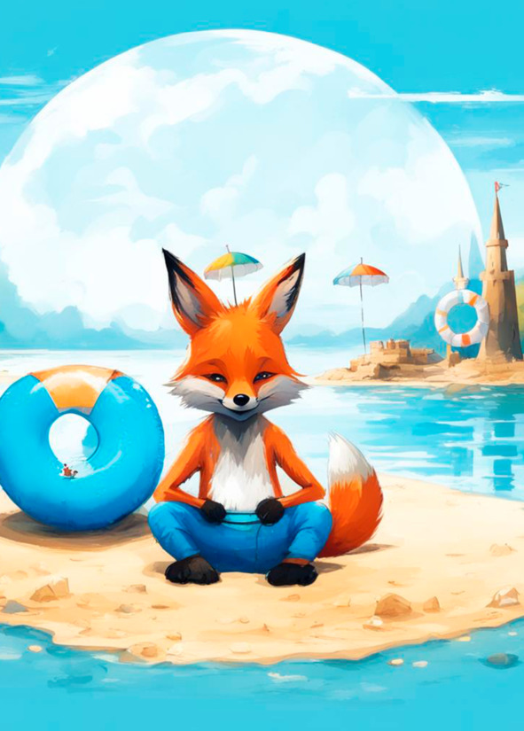 Жил-был лисенок Лапутик. Однажды в очень теплую погоду он решил сходить искупаться на озеро. Одел свои любимые плавки, собрал с собой свои игрушки, мячик и конечно же нарукавники, ведь плавал он не очень хорошо, а еще обязательно воду, и отправился к озеру!