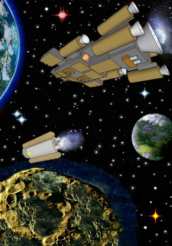Материки были большие, их было девять, суши было почти в два раза больше чем воды. Но зато на материках просматривалось довольно много больших и малых рек и озёр. На суше в основном преобладал зелёный массив лесов, пустынь было мало. Просматривались большие города с возделанными полями. На окраинах этих городов размещались разные предприятия, на первый взгляд город соответствовал своему времени. В общем, всё было почти как у нас. Злата и Даниил, развернув свой телескоп-компьютер, устремили свой взгляд в космос в поисках злосчастных астероидов. Но найти их практически было невозможно, они были ещё слишком далеко. На планете нам было нечего делать, новых технологий мы там никаких не раздобудем. А помогать им в развитии, давая свои знания опасно для дальнейшего развития их цивилизации. Уровень развития общества у них ещё слабоватый. Отдав новые технологии, какой-то одной стране, мы рискуем, что эта страна потом подомнёт под себя развитие других стран и континентов. Угнетая их, сделает остальных жителей своими рабами или людьми второго сорта. Общество-то не совсем созрело в своём развитии. Так что мы, долго не думая, развернув наш корабль, отправились на поиски двух больших астероидов. Двигались мы, внимательно выискивая их в близлежащем космическом пространстве. Зная приблизительно их координаты, скорость и траекторию полёта, правда, они могли в процессе своего перемещения незначительно меняться. Но основное направление обязательно останется прежним. Вот мы и «пошли» навстречу им, на малой скорости, постепенно подготавливаясь к горячей встречи.