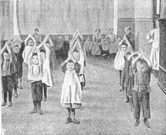 Домашние условия детей, составляющих контингент народных детских садов – ненормальны. В этом возрасте, когда идёт такая усиленная работа роста, организм требует питания, отдыха, здорового движения. Ничего этого дети не имеют. Мы должны по возможности заполнить эти пробелы.