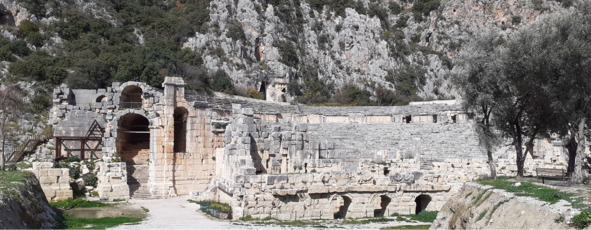 Город состоит из трех зон античных развалин. На юго-востоке города амфитеатр и некрополь. Северная зона включает разные сооружения, питающие город водой. Очень впечатляют хорошо сохранившиеся скальные гробницы. Ликийцы верили, что чем выше к небу захоронен умерший, тем ближе он будет к богу и быстрее попадет в Рай. Поэтому ликийцы вырубали гробницы в высоких скалах.