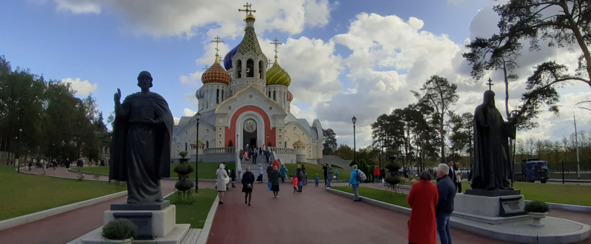 После посещения кладбища Переделкино мы осмотрели Храм Святого Князя Игоря Черниговского, который относится к Подворью Патриарха Московского и Всея Руси. Патриарх Кирилл часто служит здесь. Очень богатый храм. Покрыт сусальным золотом. И я обратил внимание на красивый иконостас, изготовленный на нашем Сысертском фарфоровом заводе.