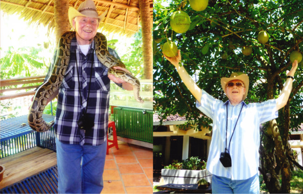 С питоном. Возле экзотических плодов