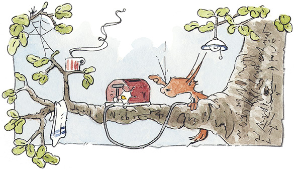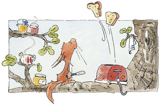 Бельчонок этого даже не заметил. У него были дела поважнее: поскорее испытать новенький тостер в деле. К счастью, хлеб он купил заранее – сразу после того, как заказал тостер. Нескольких ломтиков в пакете уже недоставало. Ещё бы, ведь посылку пришлось ждать так долго…