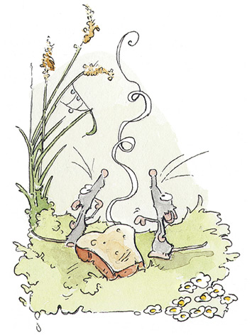 И он правда так думал. Вот только его живот, похоже, придерживался другого мнения, судя по весьма громкому урчанию. Когда же от корней дерева стал подниматься восхитительный запах поджаренного хлеба, урчание усилилось. Там, внизу, парочка лесных мышей с удовольствием уплетала один из тостов, намазав его маслом и черничным вареньем. «Ох, пахнет и впрямь превосходно», – подумал Бельчонок.