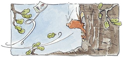 – Ну, понимаешь… – ответил Бельчонок, – просто я раньше думал, что они немного больше. И круглее. И по меньшей мере… – тут Бельчонок стрелой взлетел по стволу ближайшего дерева, – вот такой высоты!