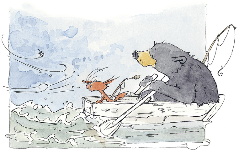 – А я-то думал, это всего лишь лёгкий ветерок, – сказал Медведь, но всё же не стал закидывать удочку, ведь Бельчонок тут же нашёлся с ответом:
