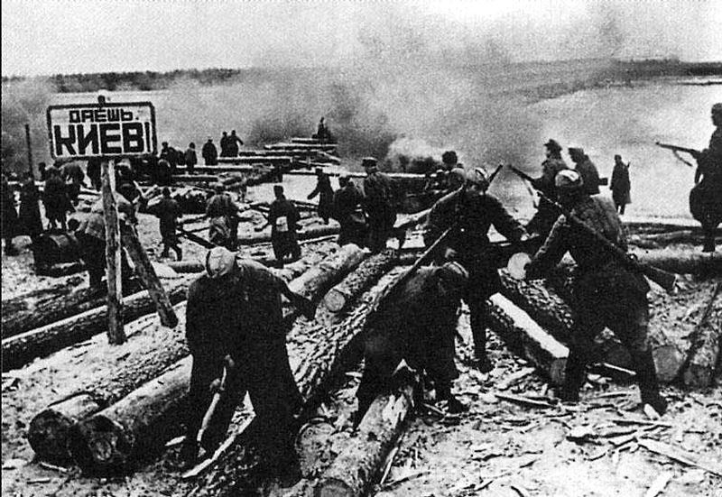 Сталин требовал «принять все меры к быстрейшему захвату Днепра и реки Молочной с тем, чтобы противник не успел превратить Донбасс и Левобережную Украину в пустынный район». 9 сентября 1943 г. Ставка направила нашим войскам директиву – за форсирование таких крупных рек, как Днепр, ниже Смоленска, и закрепление плацдармов представлять к присвоению звания Героя Советского Союза. Это было сделано, подчеркивал маршал Г.К. Жуков, «чтобы еще выше поднять морально-политический дух войск». К реке устремились войска пяти фронтов – от Центрального до Южного. К двадцатым числам сентября сопротивление перед ним ослабело: гитлеровцы торопились переправиться через реку, чтобы успеть занять укрепления недостроенного «Восточного вала». Наши войска стали преследовать противника, а авиация громила скопления вражеских частей у переправ. Уже с 21–22 сентября по мере выхода наших частей на Днепр началась переправа под огнем противника. Решительные командиры, пользуясь темнотой, а то и днем с ходу приступали к форсированию реки. Не важно, что табельные средства для переправы отстали – на наспех сколоченных плотах, найденных лодках поток войск устремился к правому берегу. Не везде, конечно, переправы были успешными, кое-где врагу удавалось отбиться, а иногда предпринять яростные контратаки. Но удержать «Восточный вал» гитлеровцам не удалось: наши войска вышли на Днепр к концу сентября на фронте в 700 км и захватили 23 плацдарма на правом берегу. За формирование Днепра 47 генералов, 1123 офицера, 1268 сержантов и солдат были удостоены звания Героя Советского Союза.