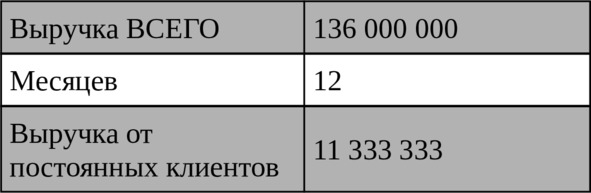 Мы рассмотрели простой вариант, в котором не закладывали увеличение среднего чека, то есть объема закупок постоянных клиентов в новом году. Такой фактор тоже необходимо учитывать. Для этого достаточно провести несложные манипуляции с нашей математической моделью и заложить потенциал роста объема продаж.