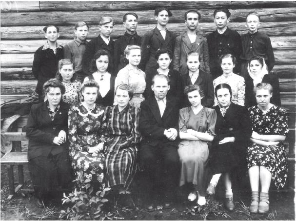9 класс, с. Родино, Алтай. 1953 г. Нижний ряд справа налево: Малко Л.И. Братчун Т.В. Классная руководительница, или учительница математики Эрика Георгиевна. Директор школы Нятак Р.В. Учительница литературы Ольга Фёдоровна. Географ Петрик Г.А….? Второй ряд. Ученики. Валя Клабукова, Галя Коваль, Нина. Л, Рита Мутафян, Нина Нестеренко, Тоня Шнайдер…? Третий ряд: Володя Ананьев, Сергей Кунаков, Ваня Галоша, Ваня Гайдабура, Ваня Рябич, Гриша Бут, Шура Логинов, Петя Шрамко