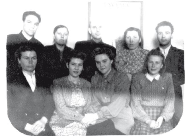 Учителя Степнокучукской семилетней школы. Верхний ряд: справа Иван Федосеевич Максачук, в центре Пётр Григорьевич Шевченко, нижний ряд: слева ветеран школы учительница начальных классов Антонина Фёдоровна Шевченко, вторая справа Лидия Александровна Германн. 1951