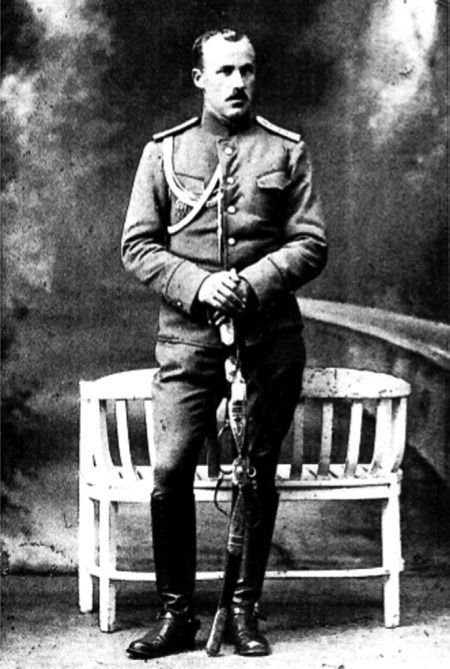 Вольдемар Озолс на Кавказском фронте с саблей, подаренной ему армянской общиной после освобождения города Ван (1915)