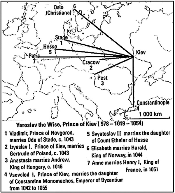 Нам ничего не известно о дипломатах Ярослава Мудрого, устроивших столь успешные династические браки. Связано ли это с введением на Руси христианства (в 988 году) или с деятельностью византийских ростовщиков и работорговцев, переселившихся в Киев.