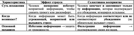 • Селективное восприятие : человек замечает только удобную информацию (фильтрует реальность в свою пользу).