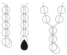 Иногда модель требует последовательного изготовления нескольких таких элементов (например, при создании кисточки или середины цветка); в этом случае проволоку несколько раз перекручивают (леску или нитку завязывают на узелок), после чего набирают следующий столбик и т. д., пока не будет готово необходимое количество нитей бисера.