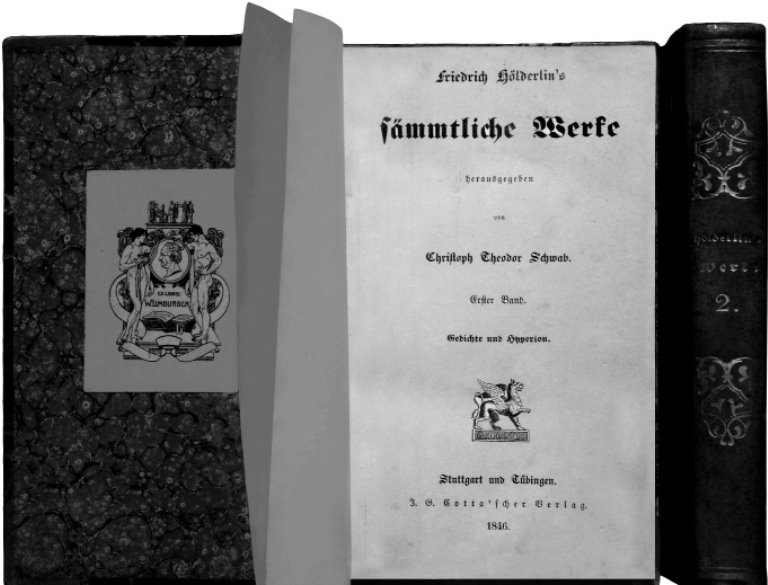 Гёльдерлин Ф. Полное собрание сочинений под редакцией C.T. Шваба (Штутгарт; Тюбинген: Котта, 1846, 2 тома)