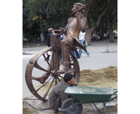 – Да так… Барин его, заводчик, приказал изобретателей бить плетьми за расход ценного металлу не по назначению, а лисапед забрал. И сам повез в Москву…