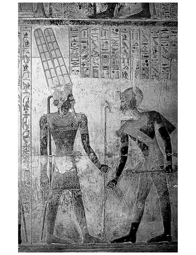 Царь Сети I (справа) склоняет голову перед Амоном-Ра