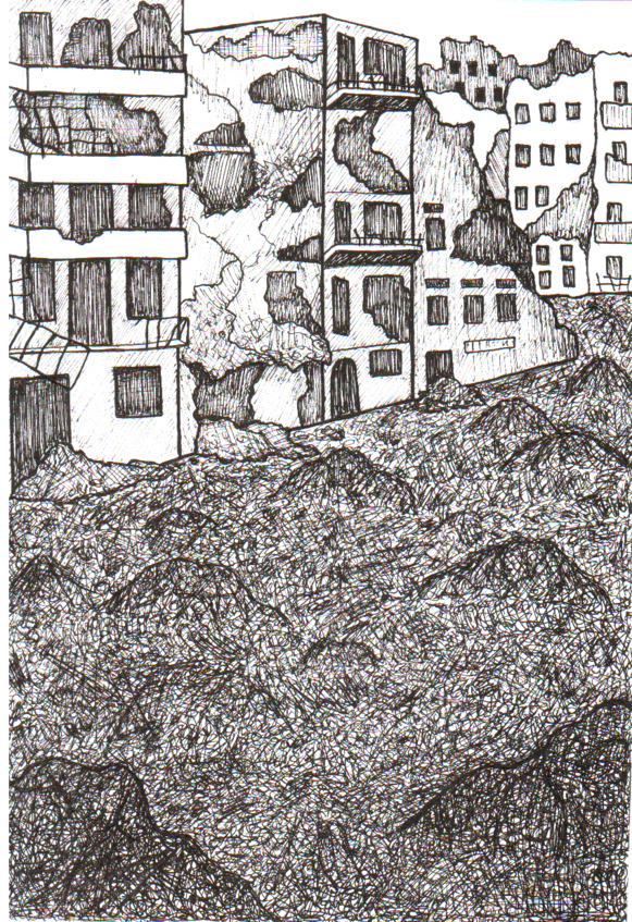Аккуратным движением мы распахнули двери, после чего проникли внутрь. Комната за комнатой мы обследовали интерьеры здания. Пока, наконец, не наткнулись на истекавшее кровью тело. Женщина, на вид лет пятидесяти, она лежала на спине возле стола, под которым, очевидно, пыталась спрятаться, но не успела. Рядом с ней валялся дешевый деревянный стул. Из ее окровавленного лица торчали осколки стекла, один из них с фатальной меткостью попал в глаз женщине, остальные симметрично разместились по остальной площади правой стороны головы. Какие-то влетели в ухо, другие – в щеку, третий поразил висок. В ногах женщины, где-то в том месте, где должны быть колени, лежала огромная глыба из кирпичей, склеенных бетоном. Она рухнула откуда-то сверху и, очевидно, добила женщину, перерубив ей ноги, в то время как первый снаряд, упавший где-то подальше, лишь отбросил ее от стола и поразил осколками оконного стекла…