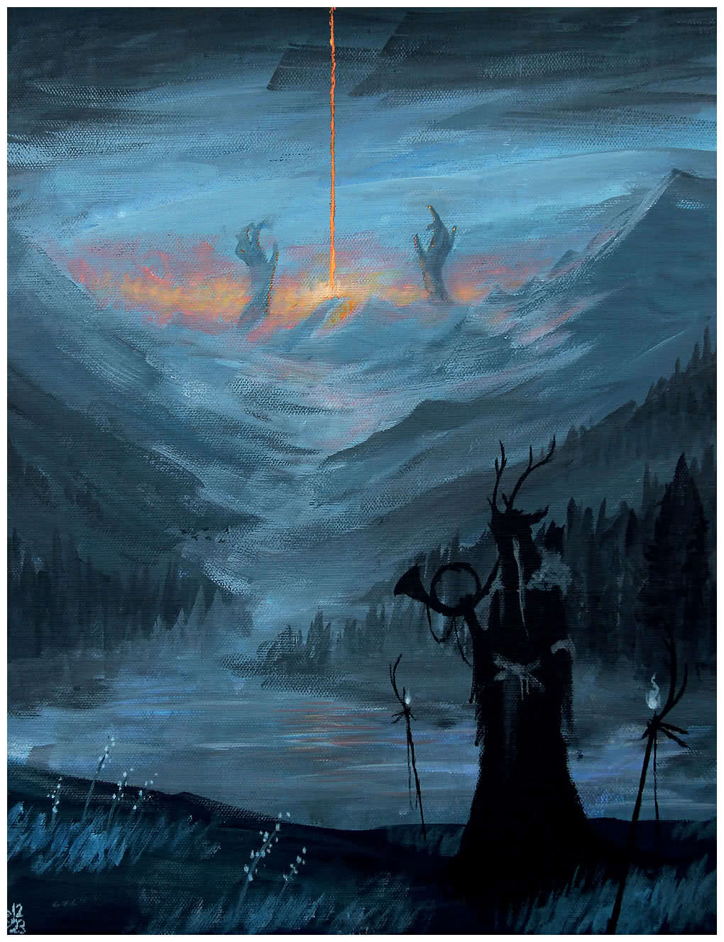 Я настраиваю себя, просматривая мистические фильмы, книги, ролики на YouTube, изучаю работы художников в разных соцсетях, но самое важное для меня – музыка. Она – ключевой инструмент в создании образа. Я пытаюсь войти в своего рода состояние «измененного сознания». Его сложно описать. Оно чем-то напоминает легкую версию дереализации. Контролируя его и используя как инструмент, я могу смотреть на мир «под другим углом». Видеть и замечать необычное в обычном. Затем я перехожу к брэйншторму.