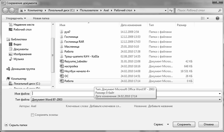 Окно Сохранение документа