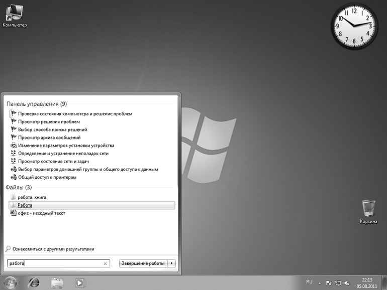 Наведите курсор мышки на значок системы и нажмите левую кнопку. Появится окно, внизу которого справа вы увидите надпись Завершение работы.