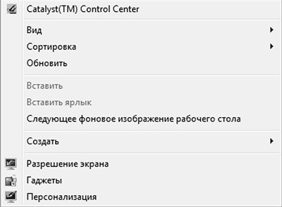 1. В любом свободном месте Рабочего стола щелкните правой кнопкой мыши. Откроется вот такое окно: