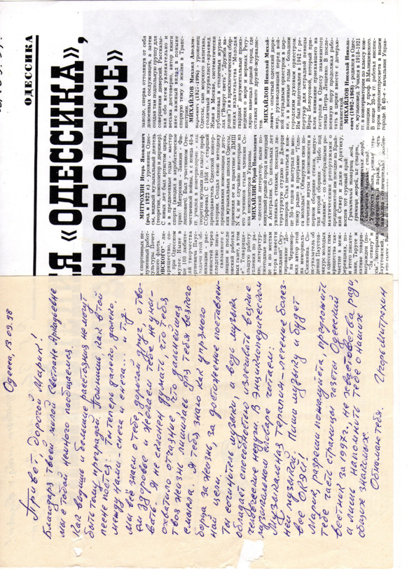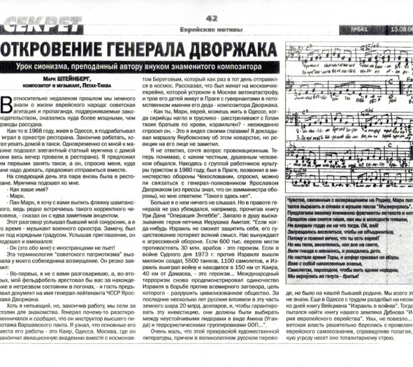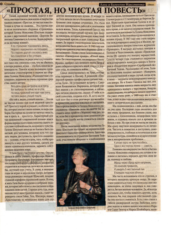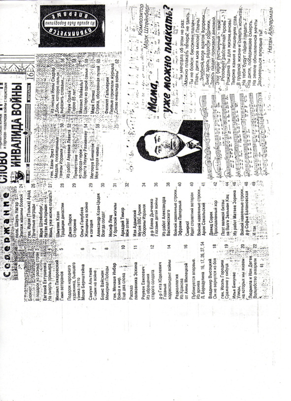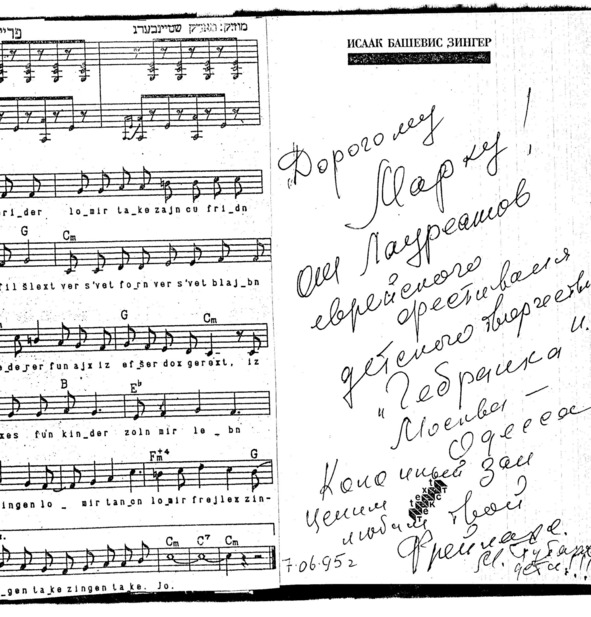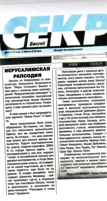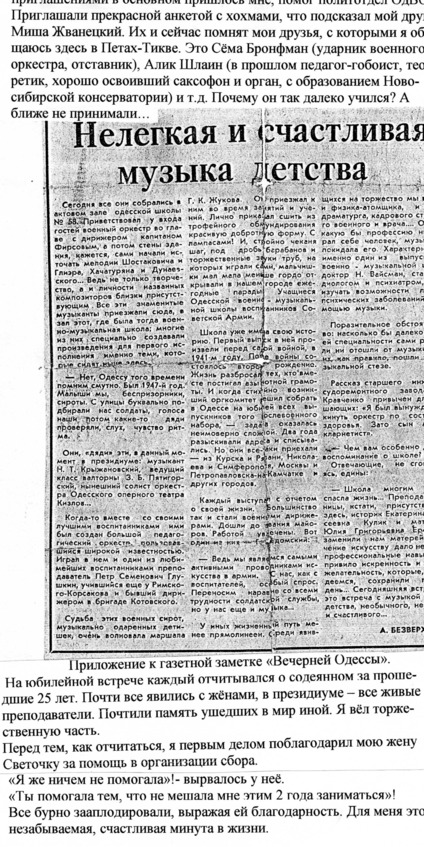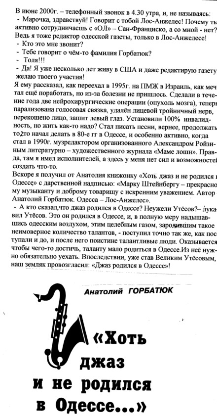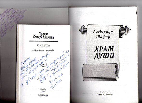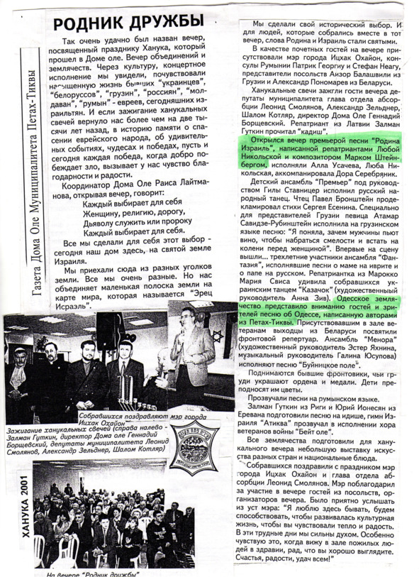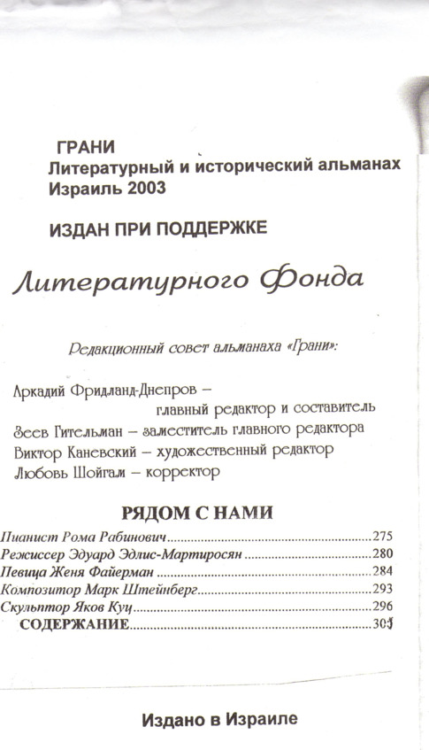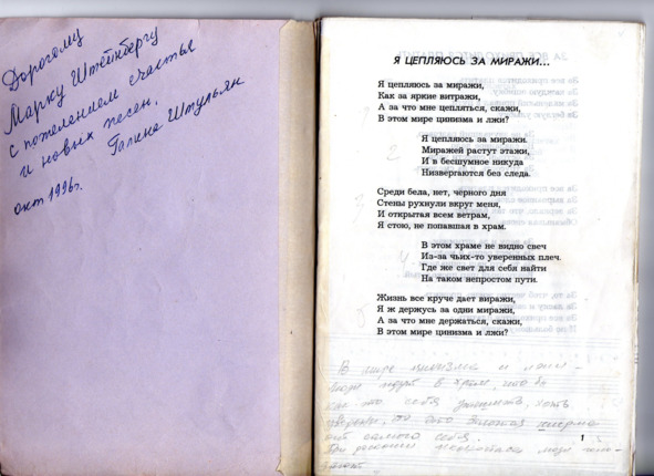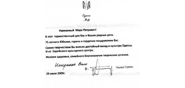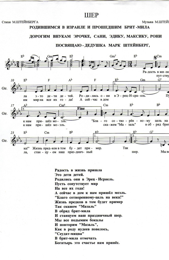 – В «титрах» моих воспоминаний израильского периода жизни Марк Штейнберг – автор многих прекрасных песен не только на русском языке, но и на языке идиш, автор музыкальных сборников, статей и рассказов. О Марке Штейнберге нередко пишут в израильской, украинской и американской прессе.