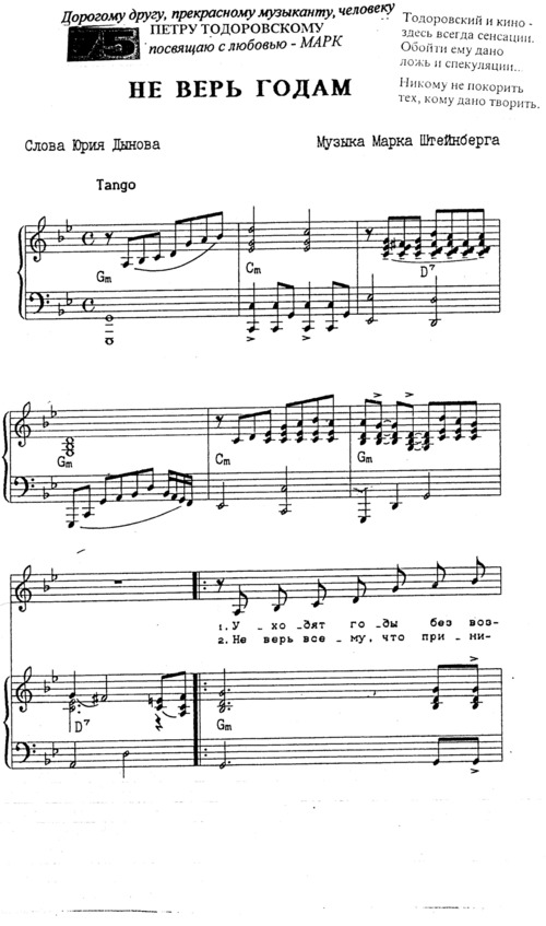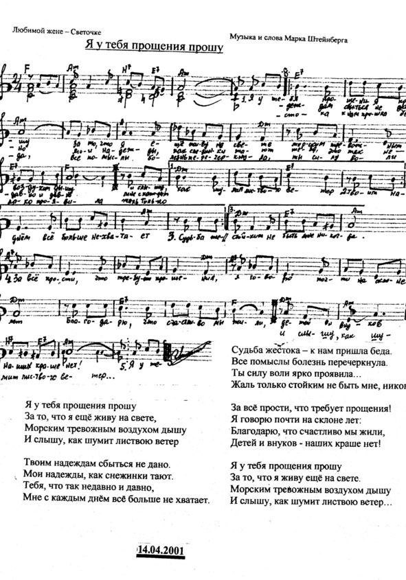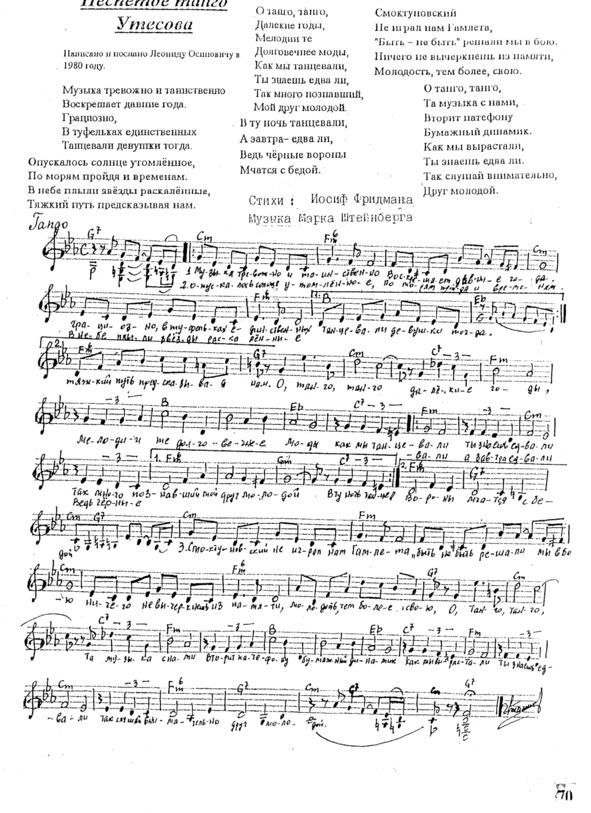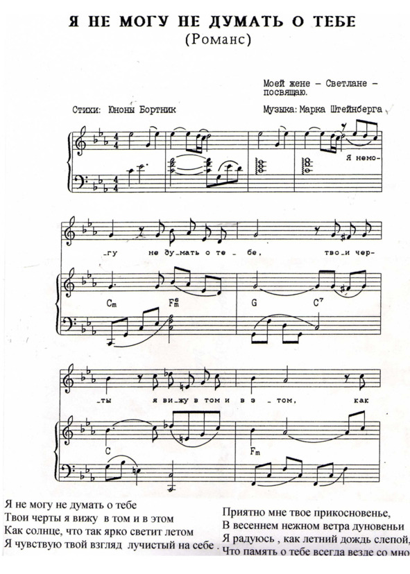 Но, потеряв физическую возможность воспроизводить на инструменте свои музыкальные творения, композитор записывает их на нотных листах. Марк Штейнберг – человек огромной воли. Борясь с тяжелым недугом, он упорно продолжает работать, писать прекрасную музыку. Сотни стихов знаменитых и малоизвестных поэтов обрели новое звучание, новую жизнь благодаря переложению их композитором на музыку. Песни эти исполняют во многих странах.