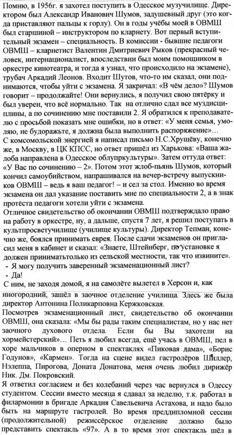 Познакомившись ближе со Штейнбергом, я счел просто необходимым для себя попросить коллег-музыковедов рассказать об этом не только творчески интересном, но и мужественном человеке, о неординарном становлении этой талантливой личности.